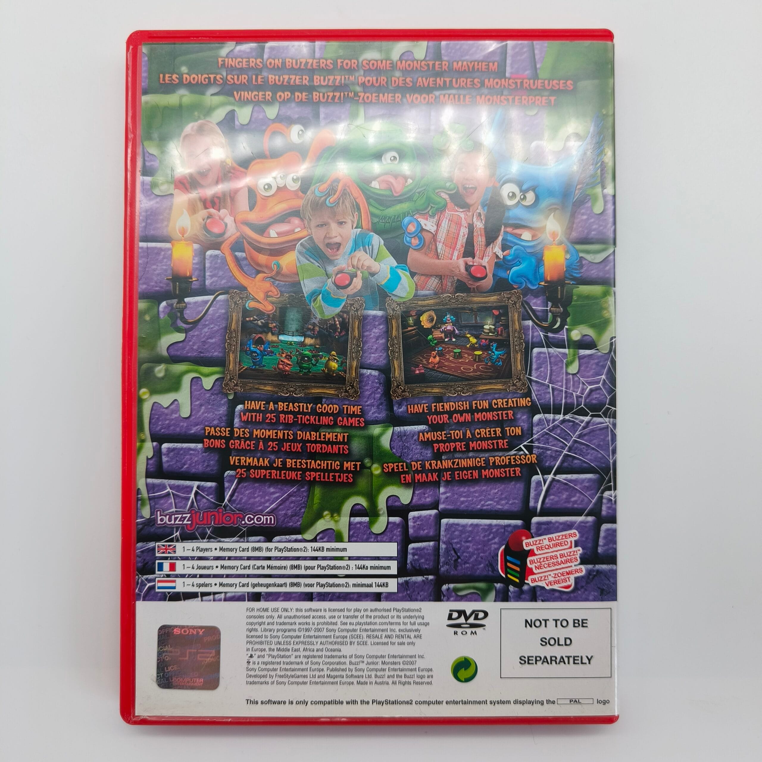 Buzz! Junior: Monsters PS2 is een ideale partygame voor gezinnen en vriendengroepen. De combinatie van eenvoudige besturing, vrolijke presentatie en gevarieerde minigames maakt het tot een tijdloze topper binnen de Buzz!-reeks. Het is een spel dat je blijft oppakken voor snelle, gezellige sessies vol gelach en competitie. Onze disc is getest en werkt perfect, zodat je direct kunt beginnen met buzzen en kunt genieten van een monsterlijk leuke game-ervaring.